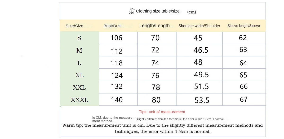 The size is measured manually, with a reasonable error of 1-3CM/due to different display effects, there may be some color differences.