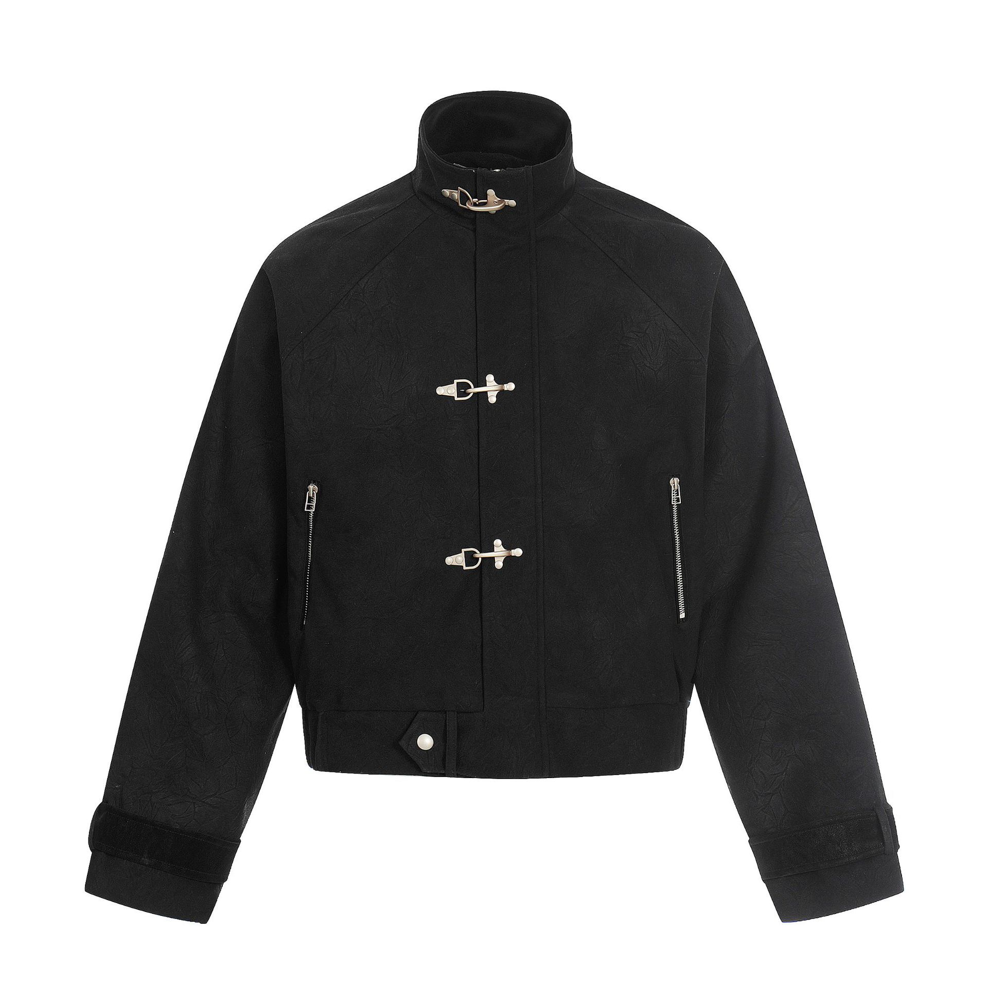 Casual Short Jacket with Snap Button Stand Collar and Unique Design