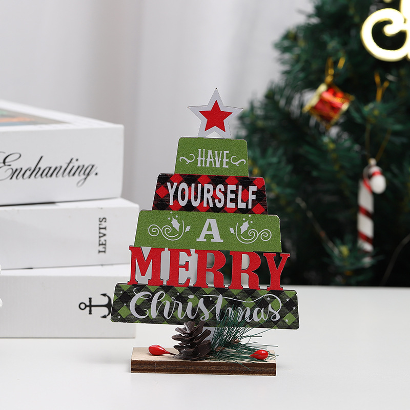 Christmas decorations wooden hollow Christmas tree shapes English letter desktop ornaments party decorations