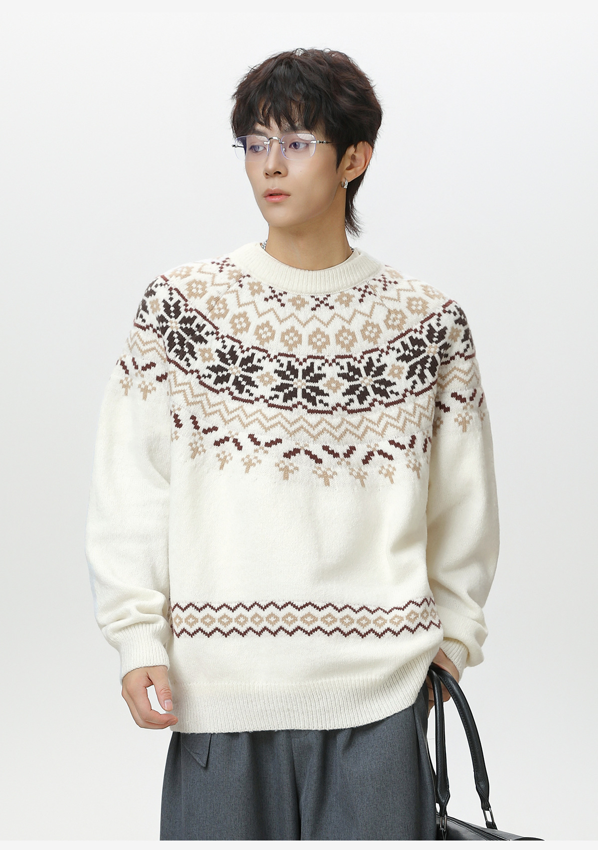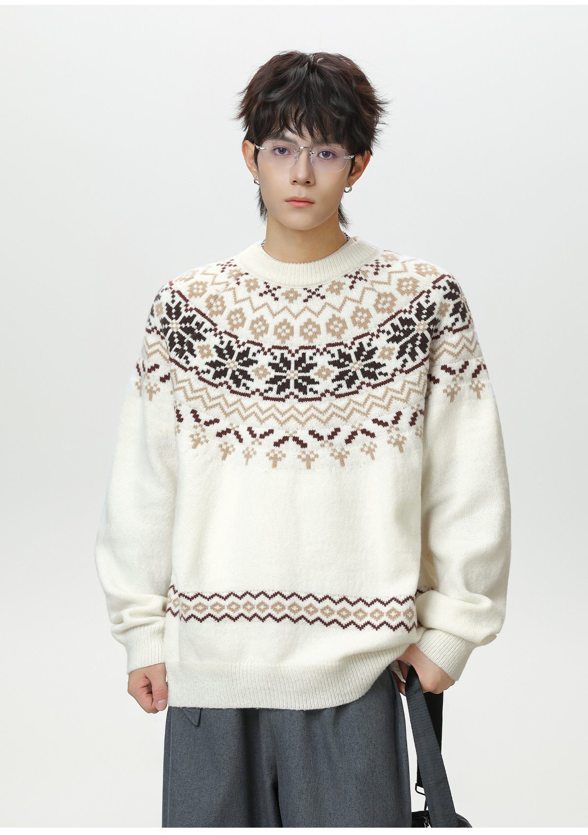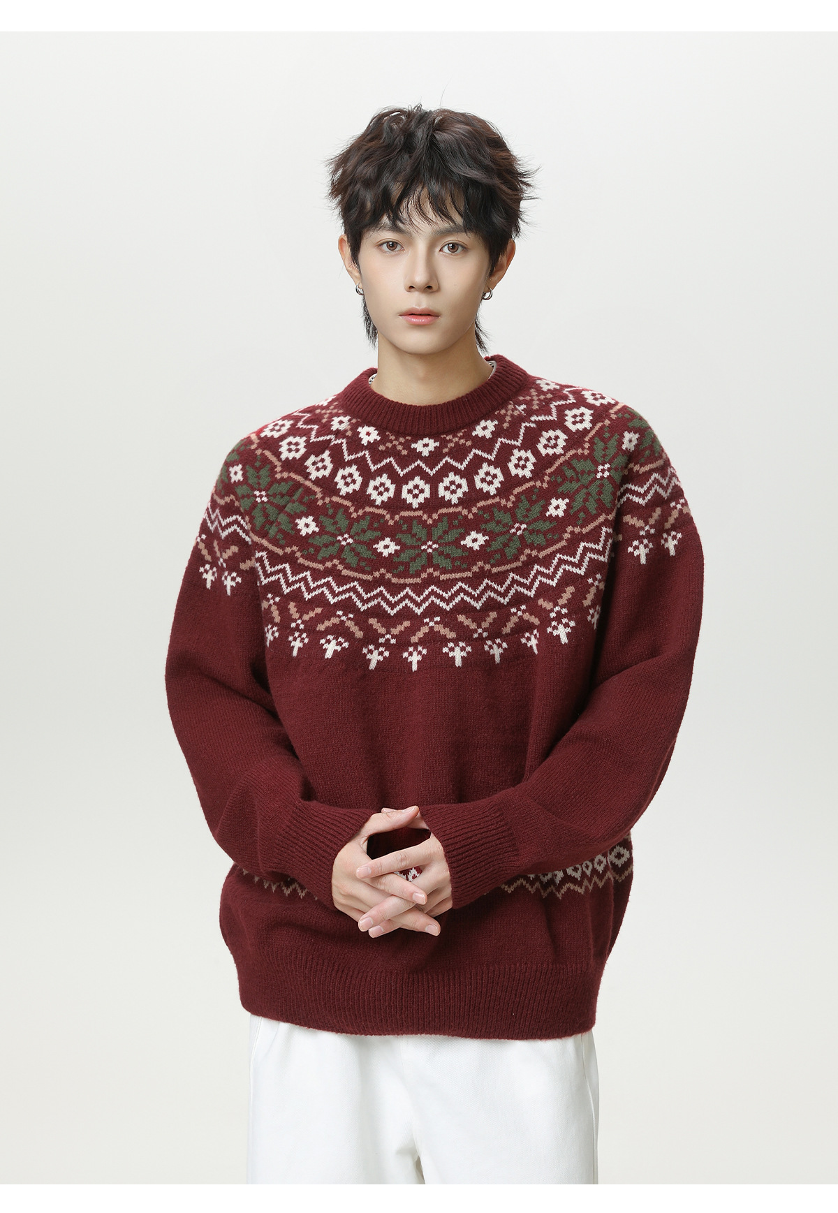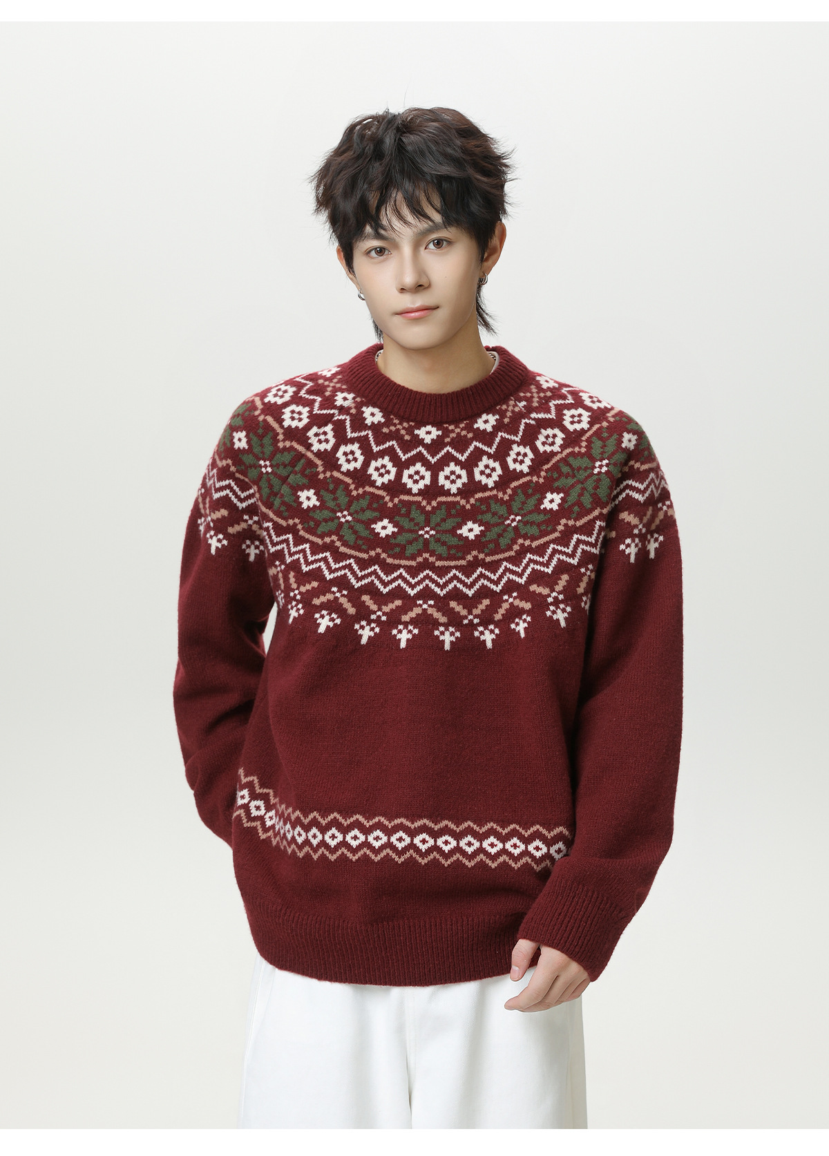 Ethnic style round neck sweater for men