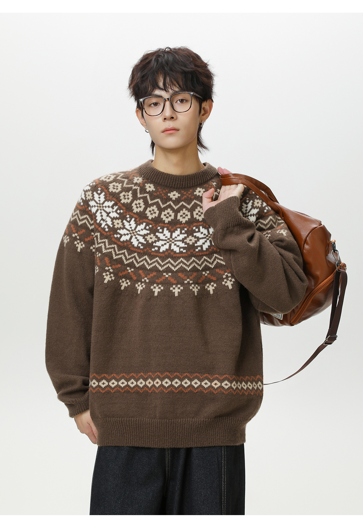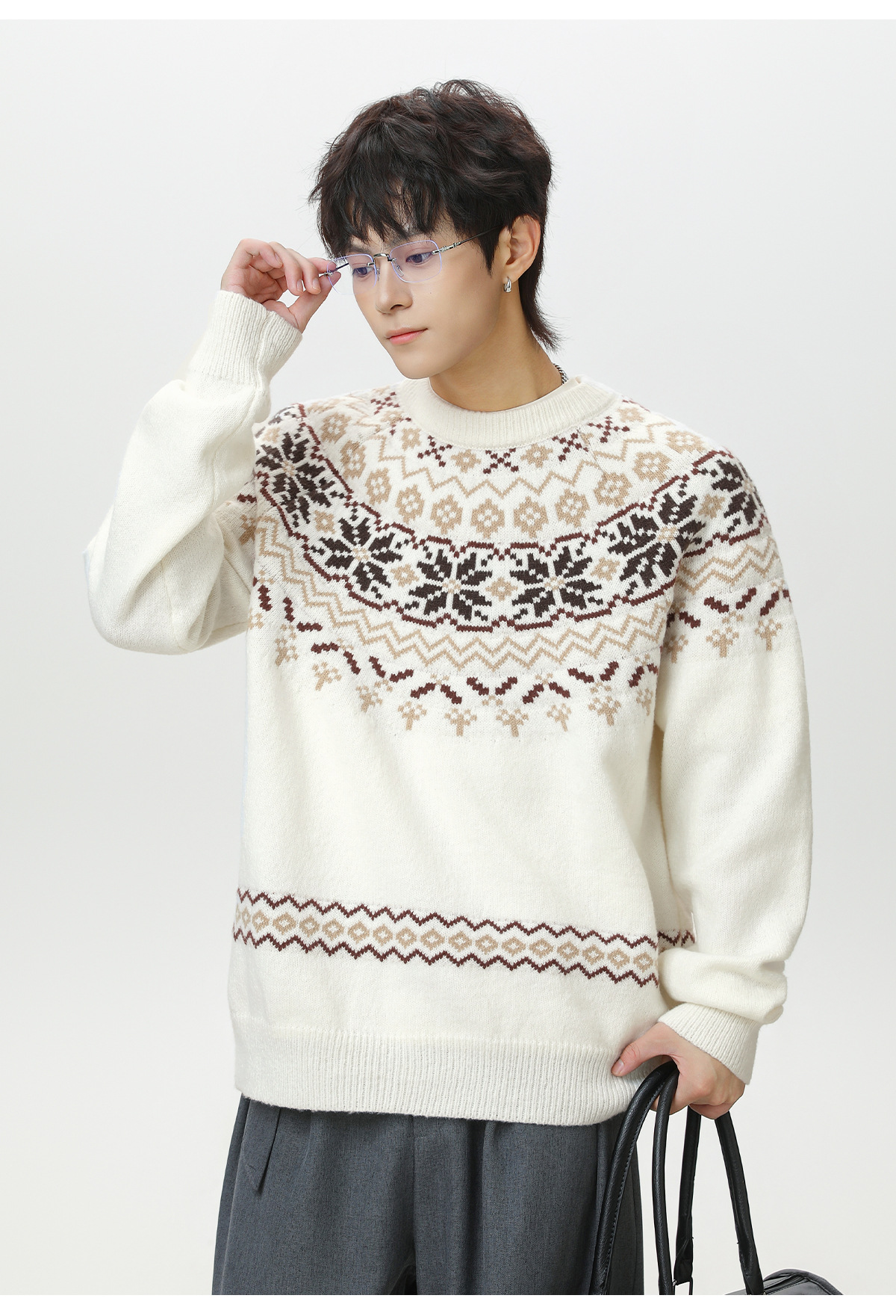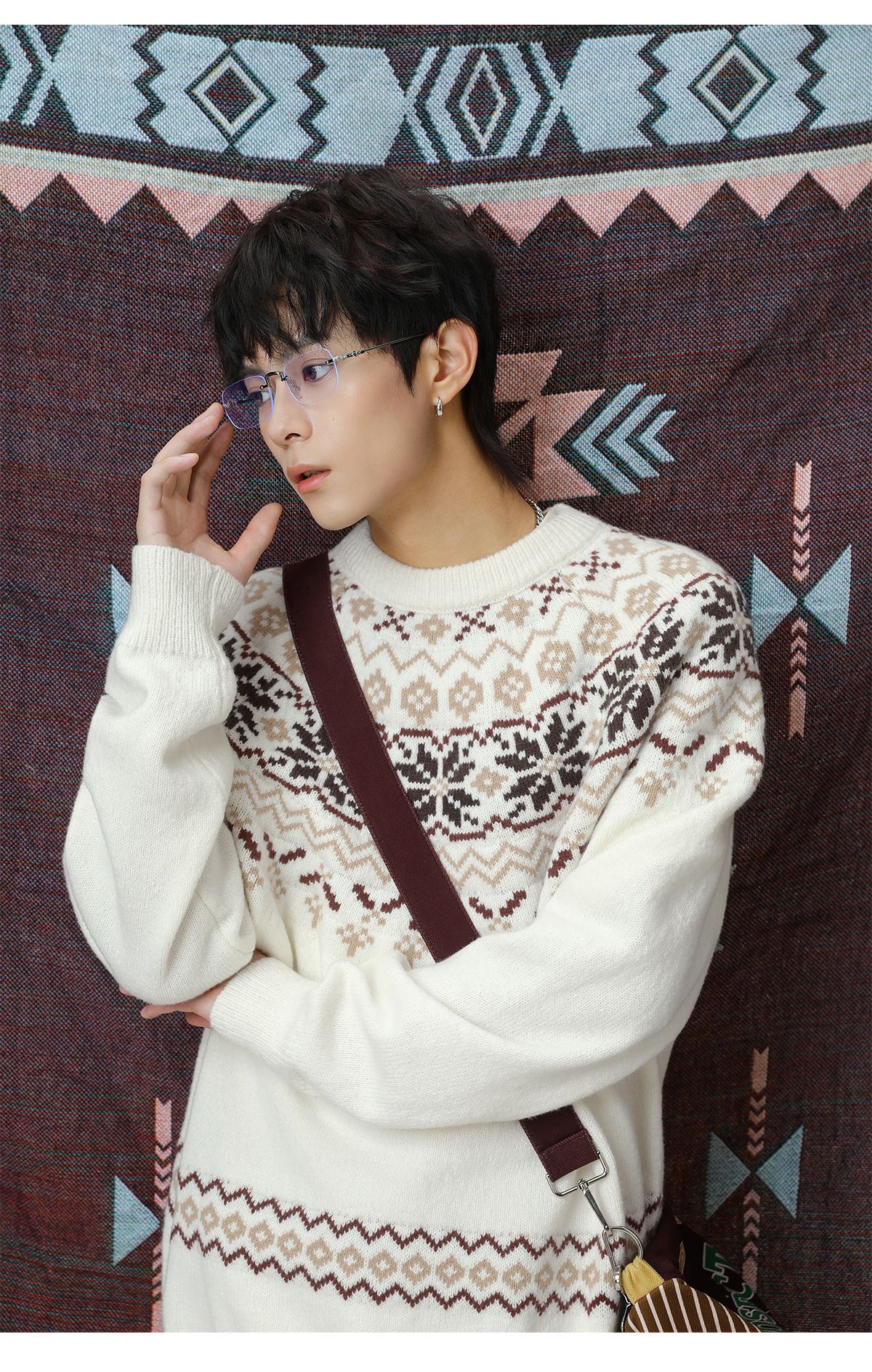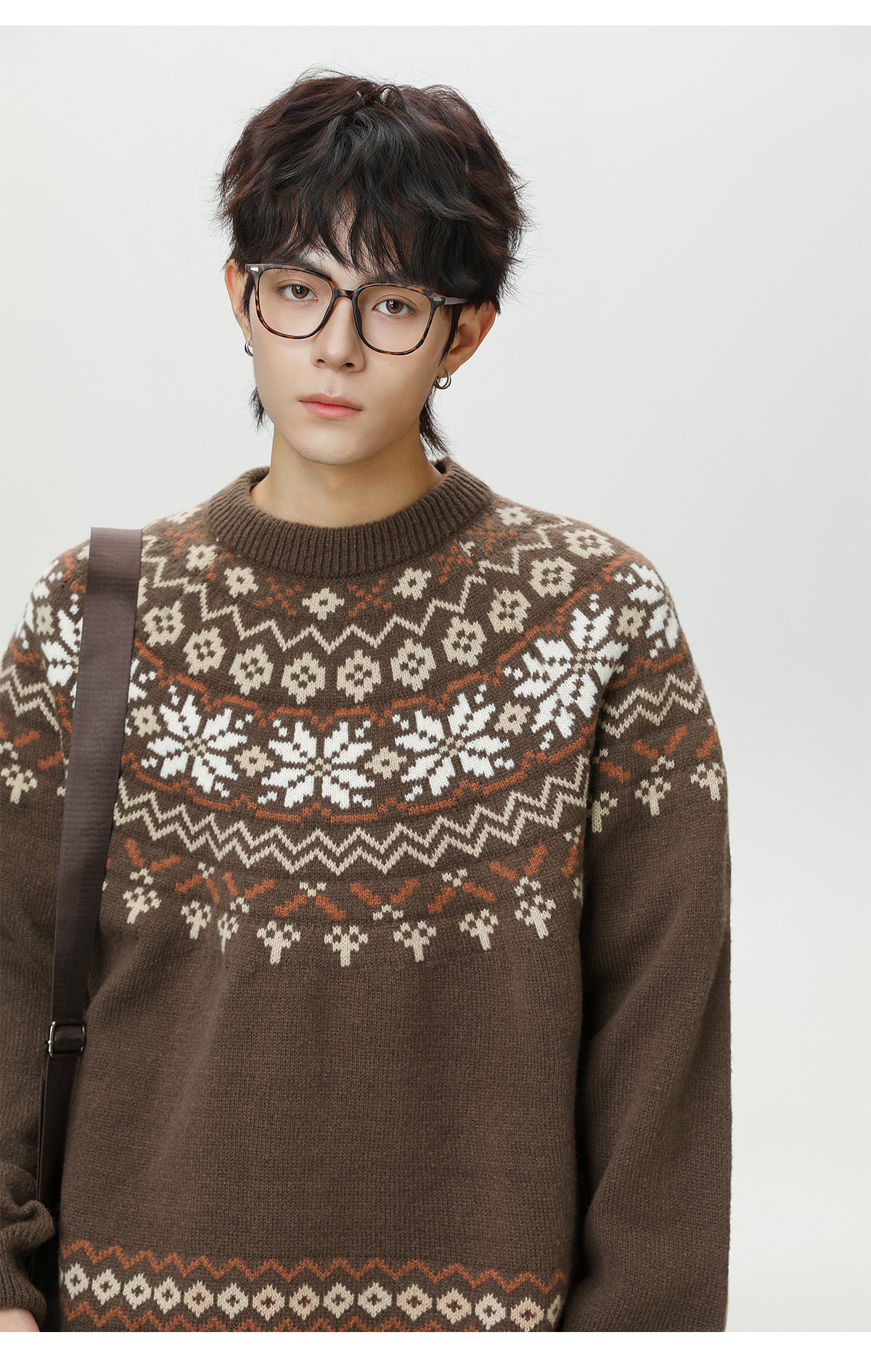 Ethnic style round neck sweater for men
