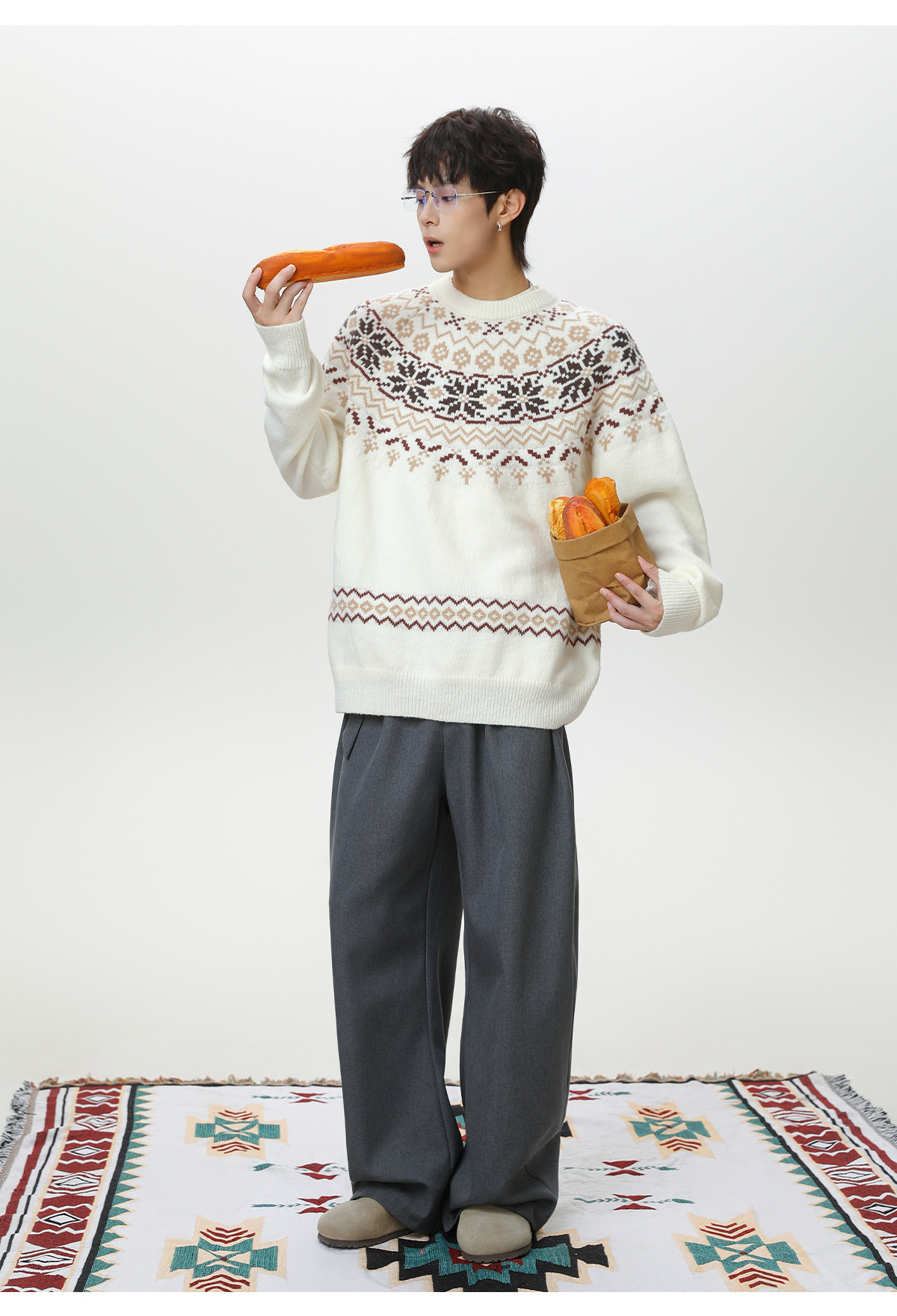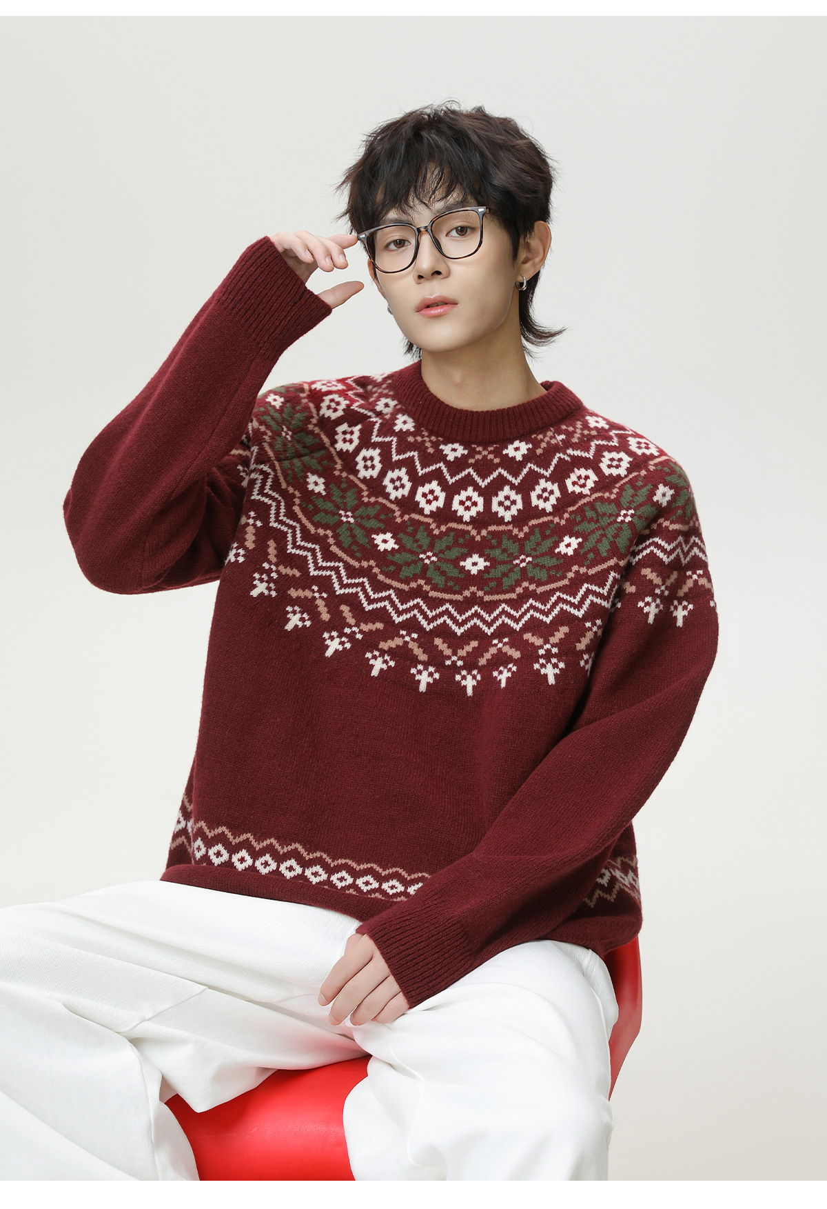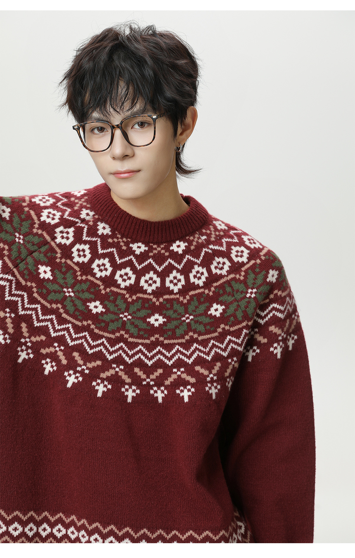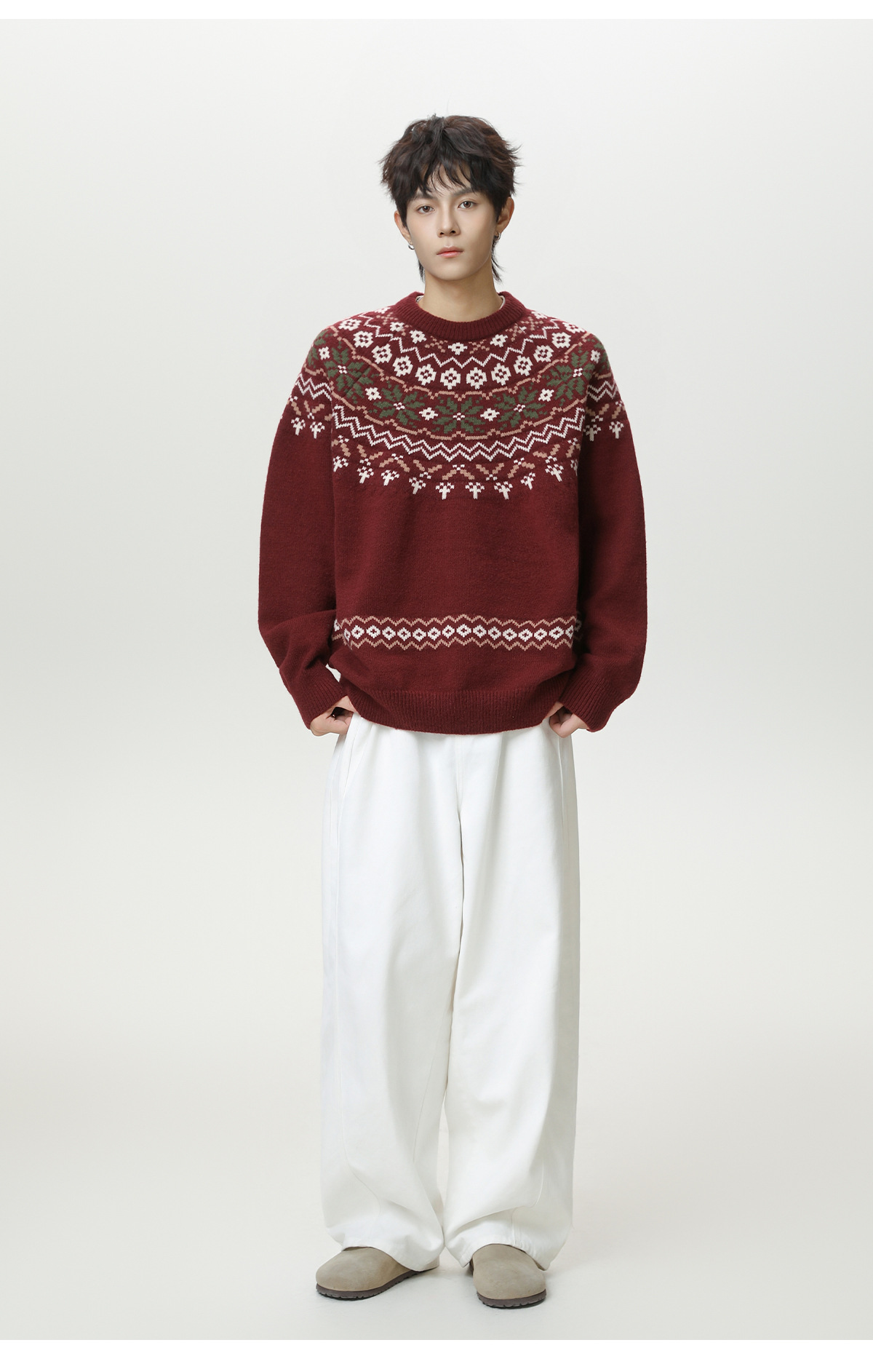 Ethnic style round neck sweater for men