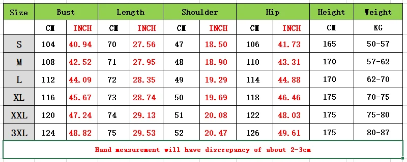 1. This Size Chart is only for your reference. Please allow 1-3 cm error for hand measurement.