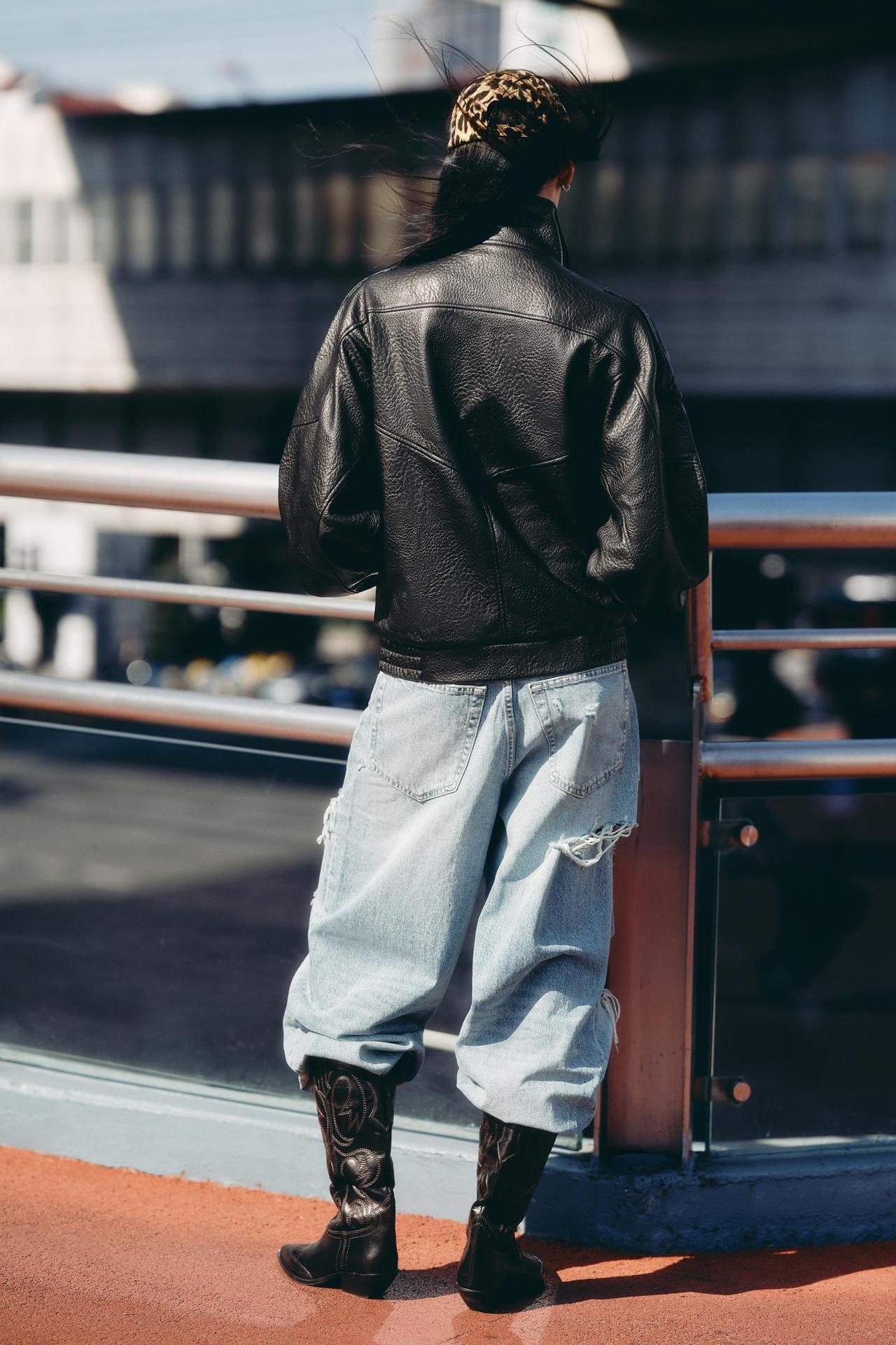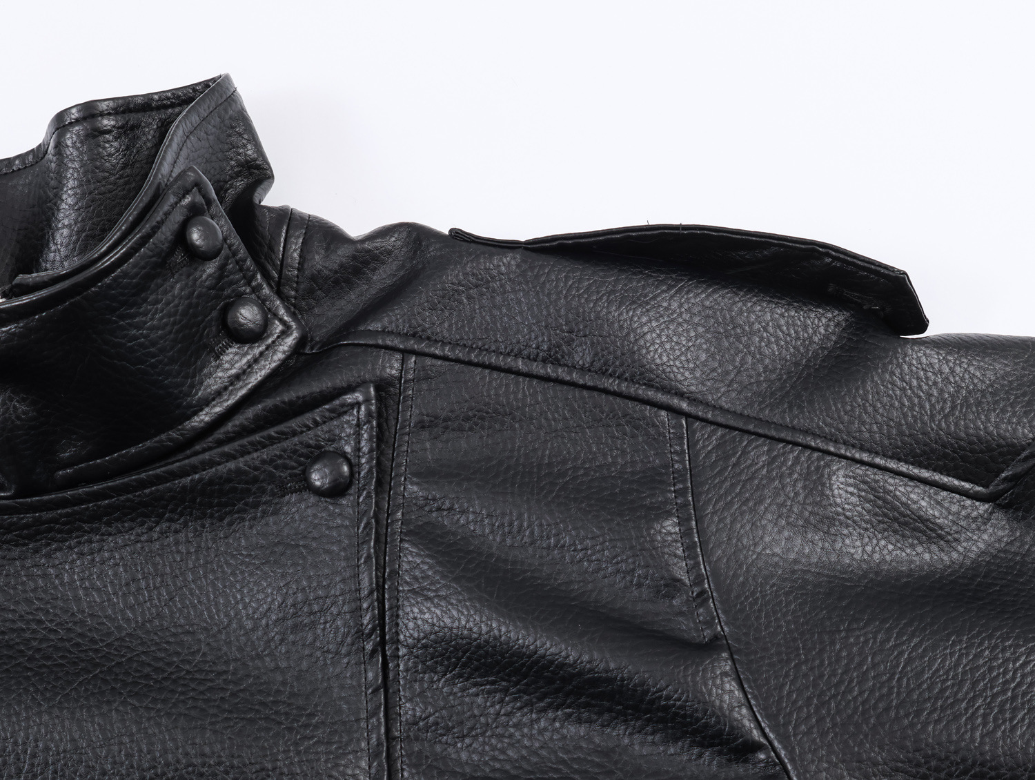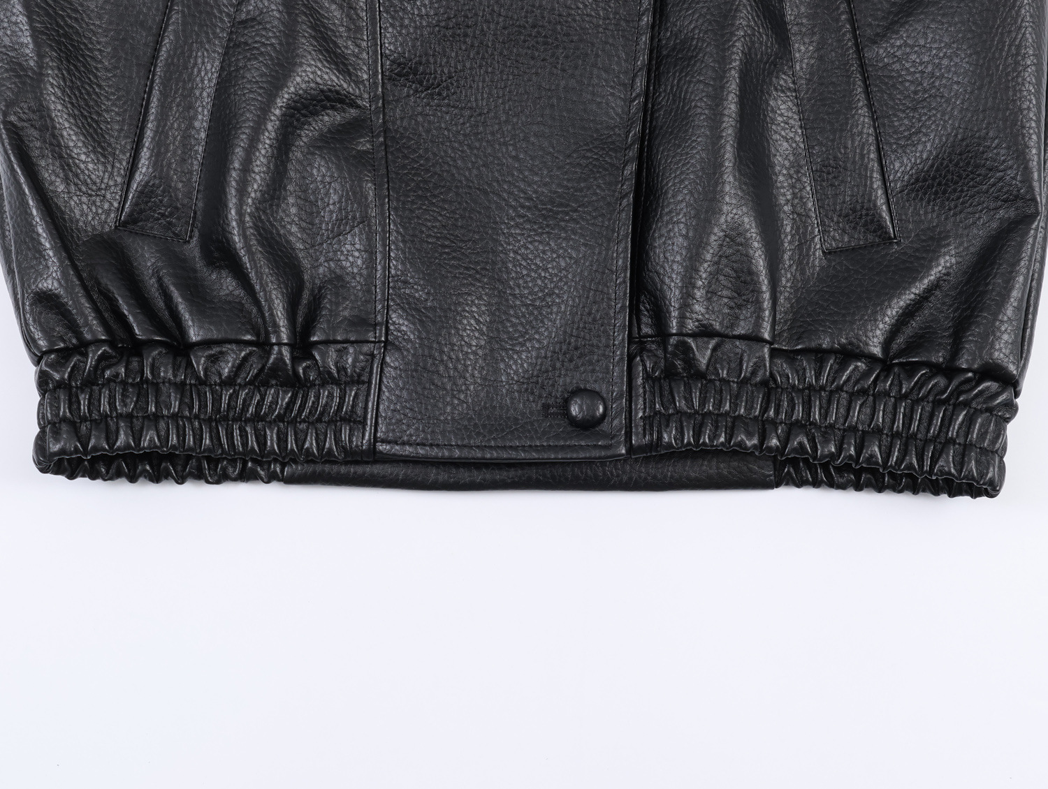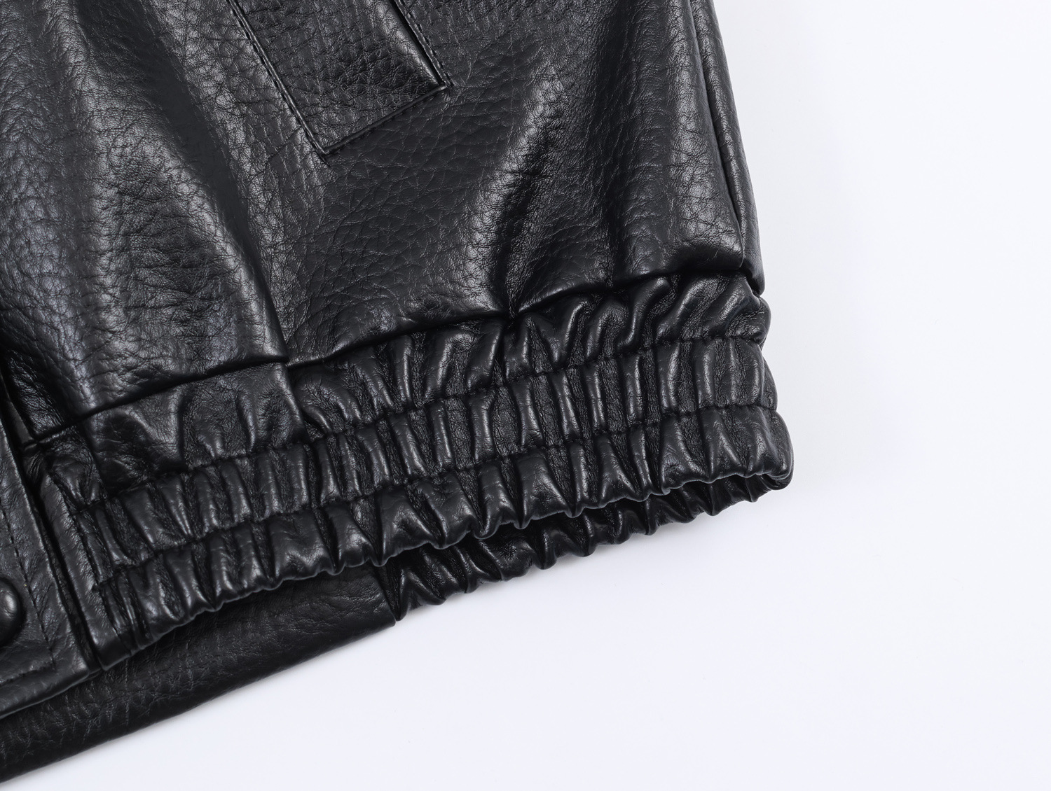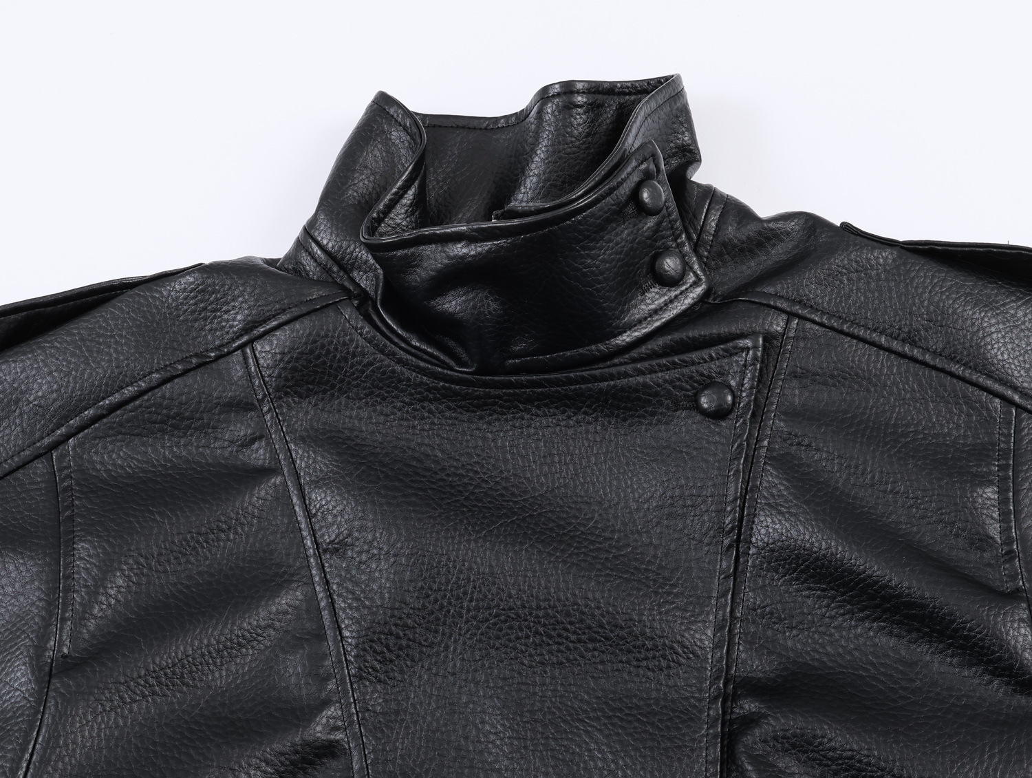 Fashionable Leather-Textured Solid Color Stand Collar Casual Jacket for Women