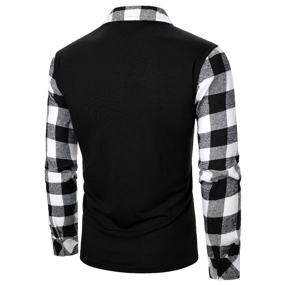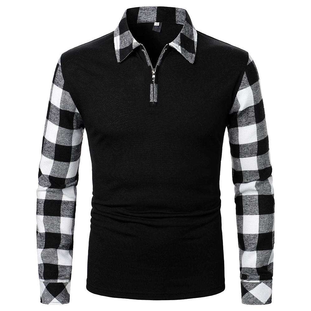 Men Polo Shirt Men Long Sleeve Top Plaid Matching Polo Shirt New Business Wear Clothing Casual Fashion Men Tops