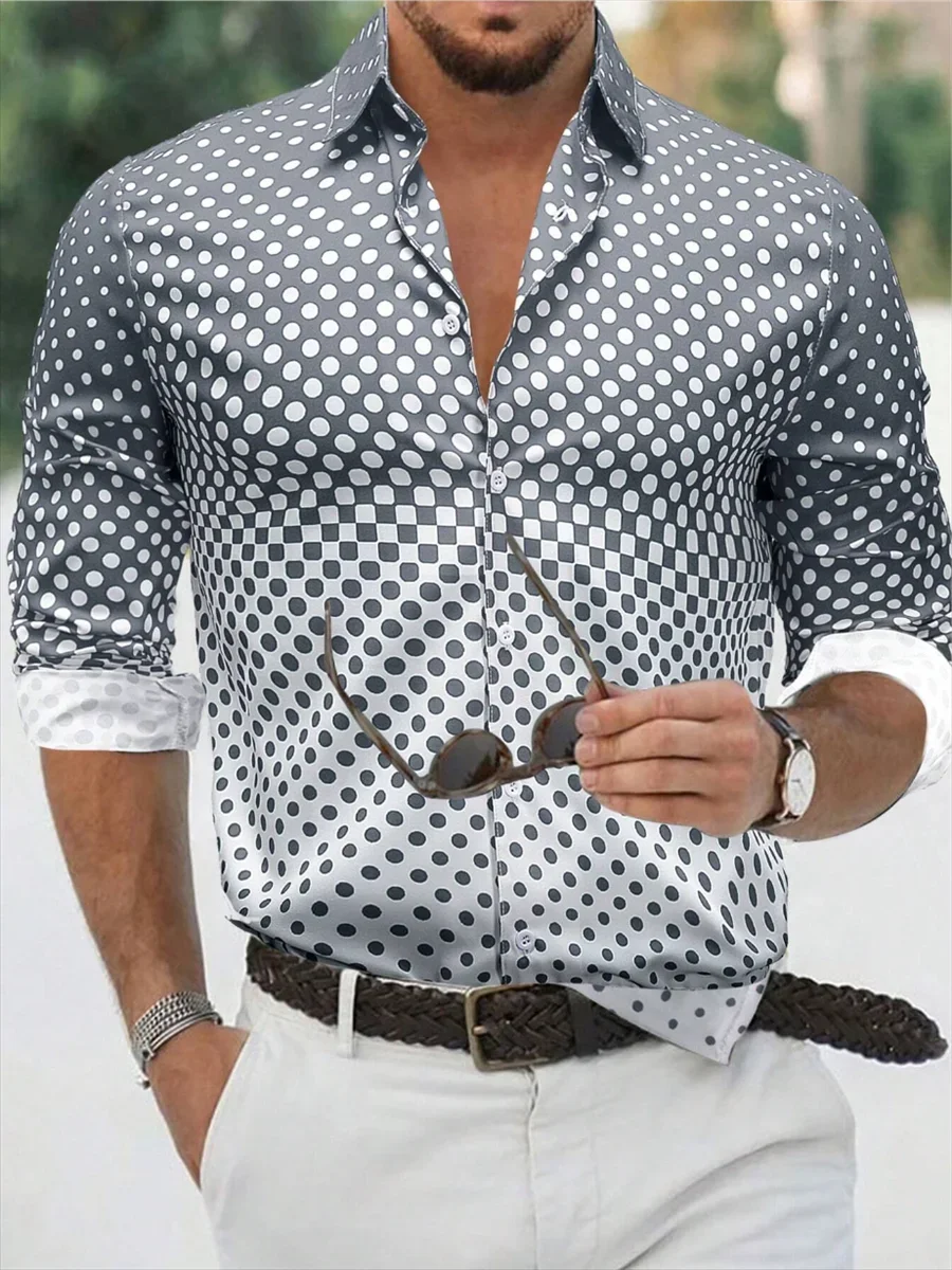 Men's gradient Long sleeve Shirt Lapel Street Vacation Print Clothing Fashion Casual Hawaiian shirt oversized 6XL
