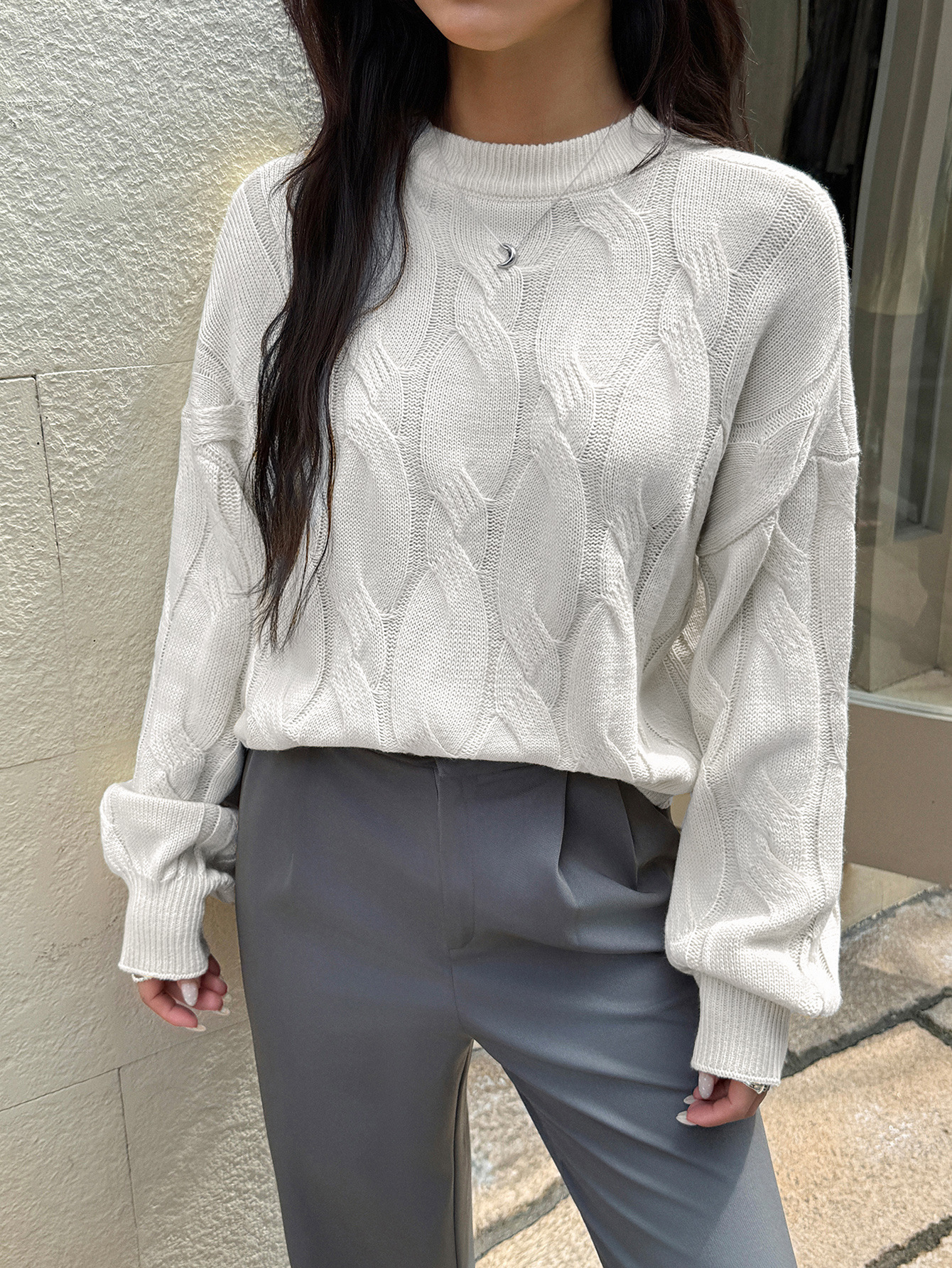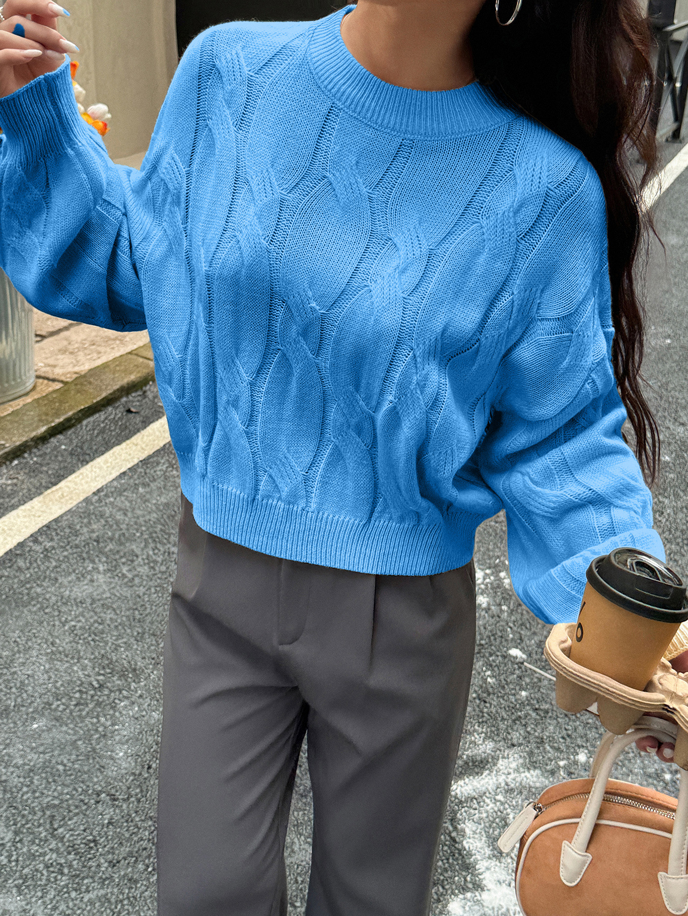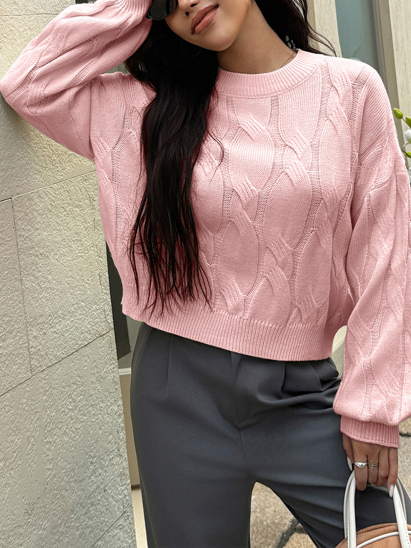 Solid color long sleeved sweater top woven with wool