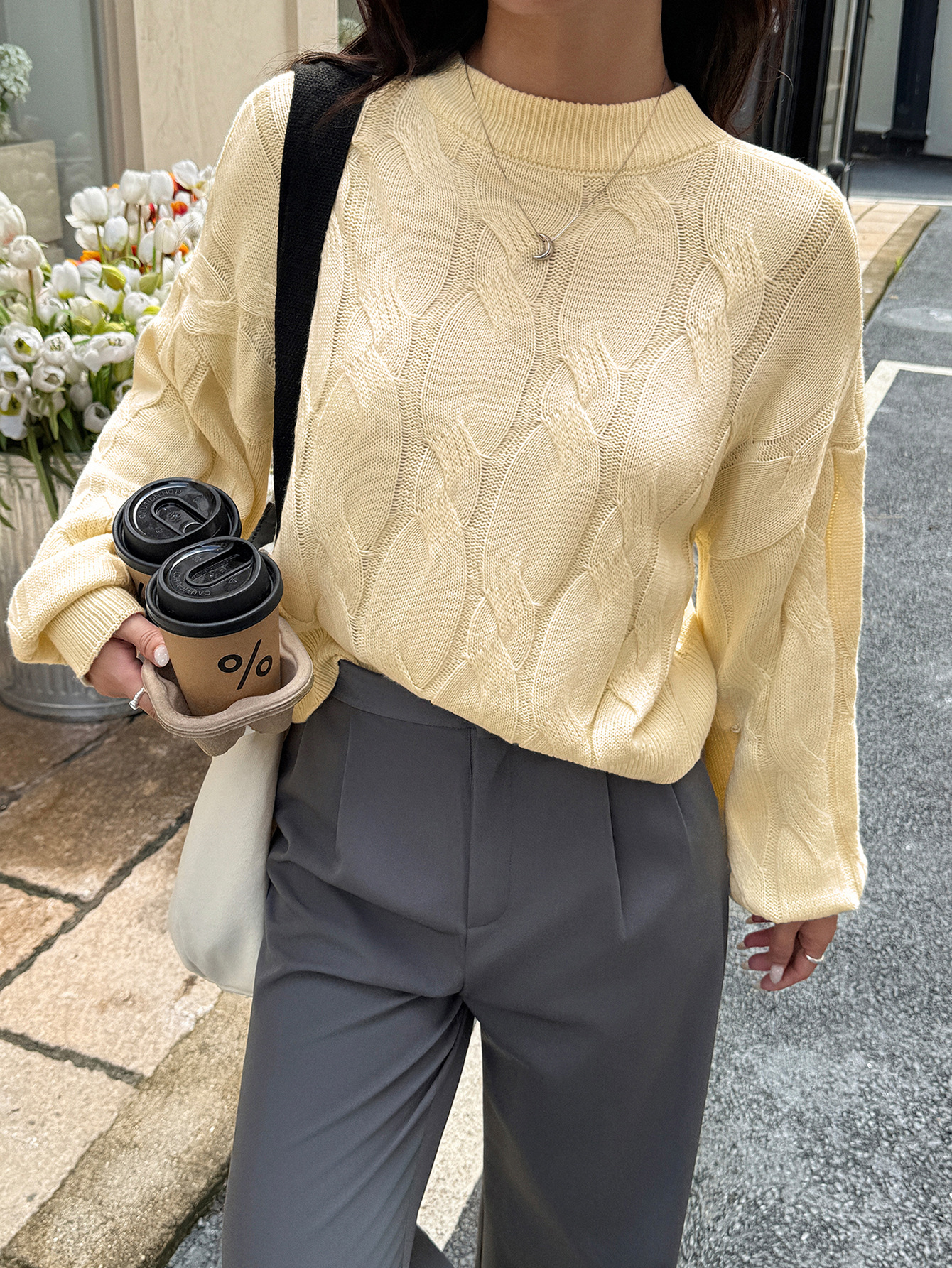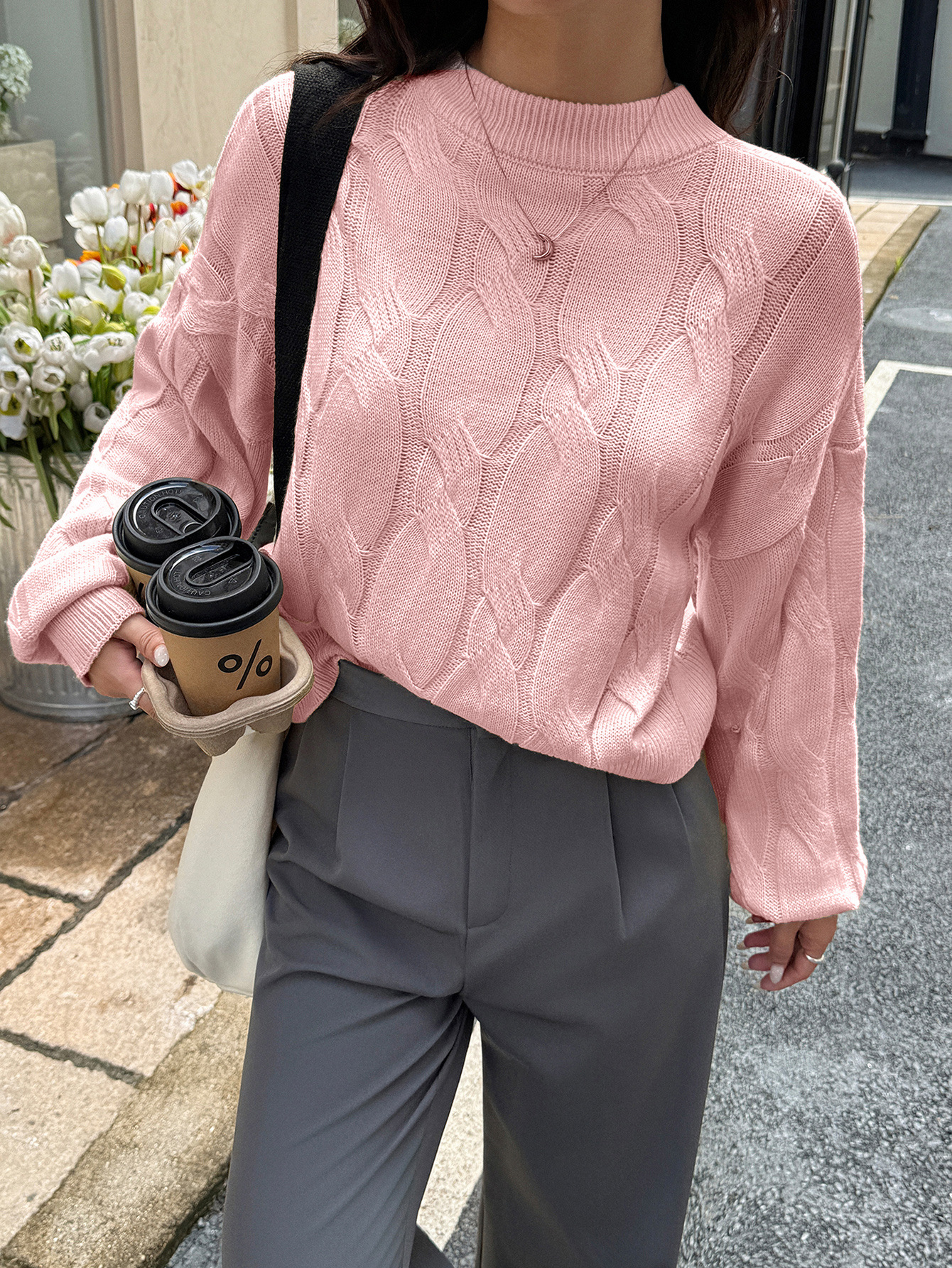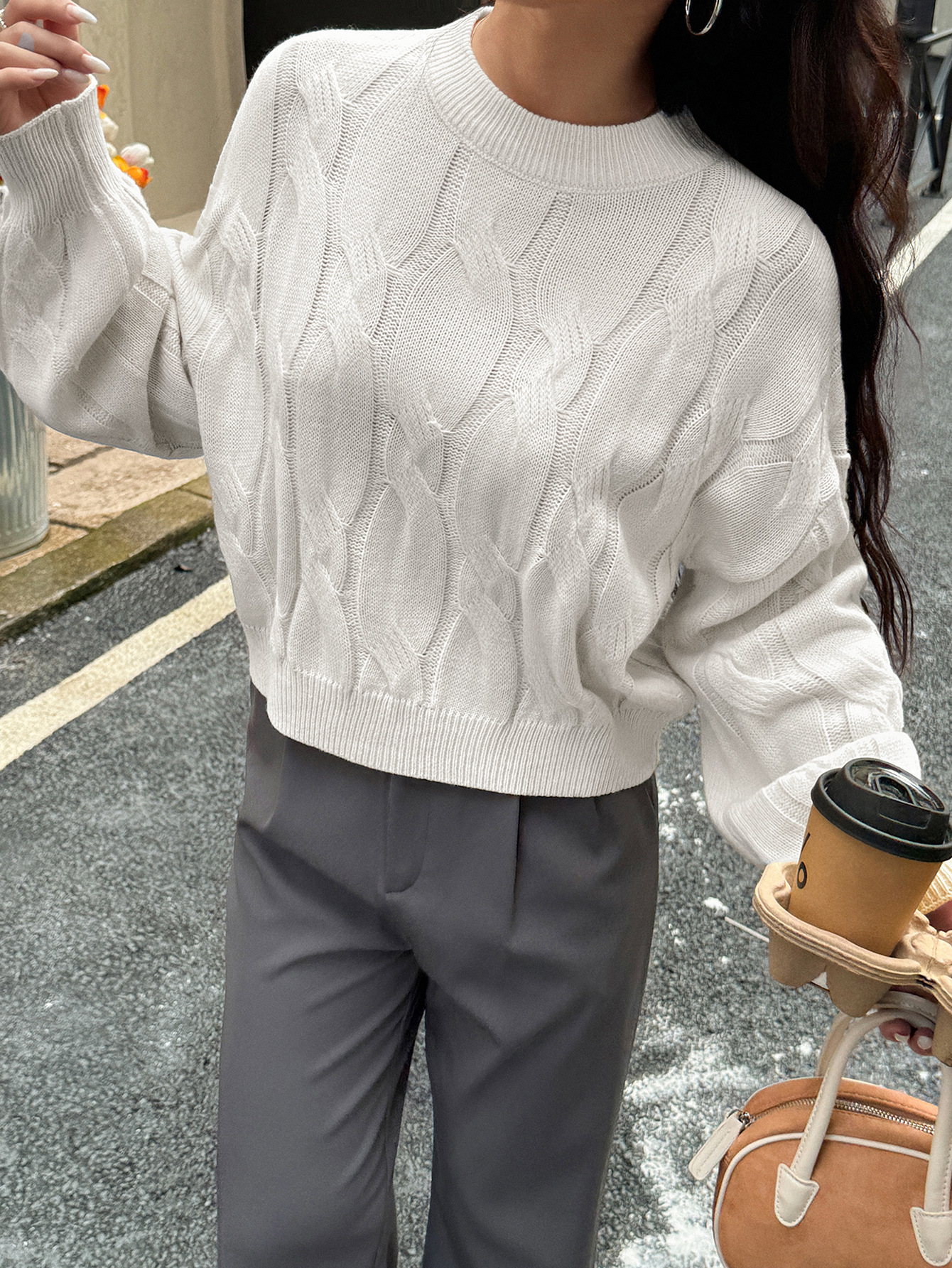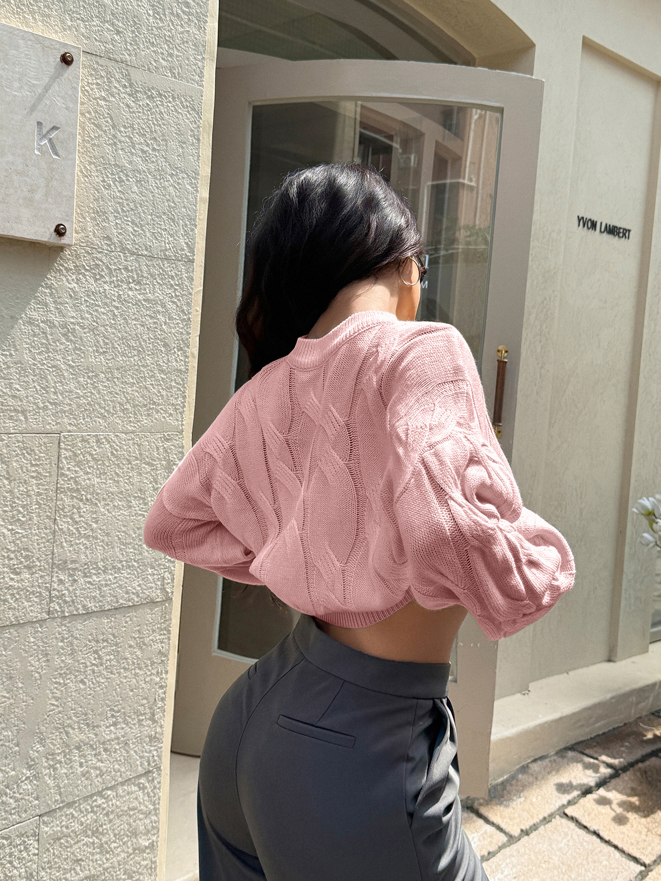 Solid color long sleeved sweater top woven with wool